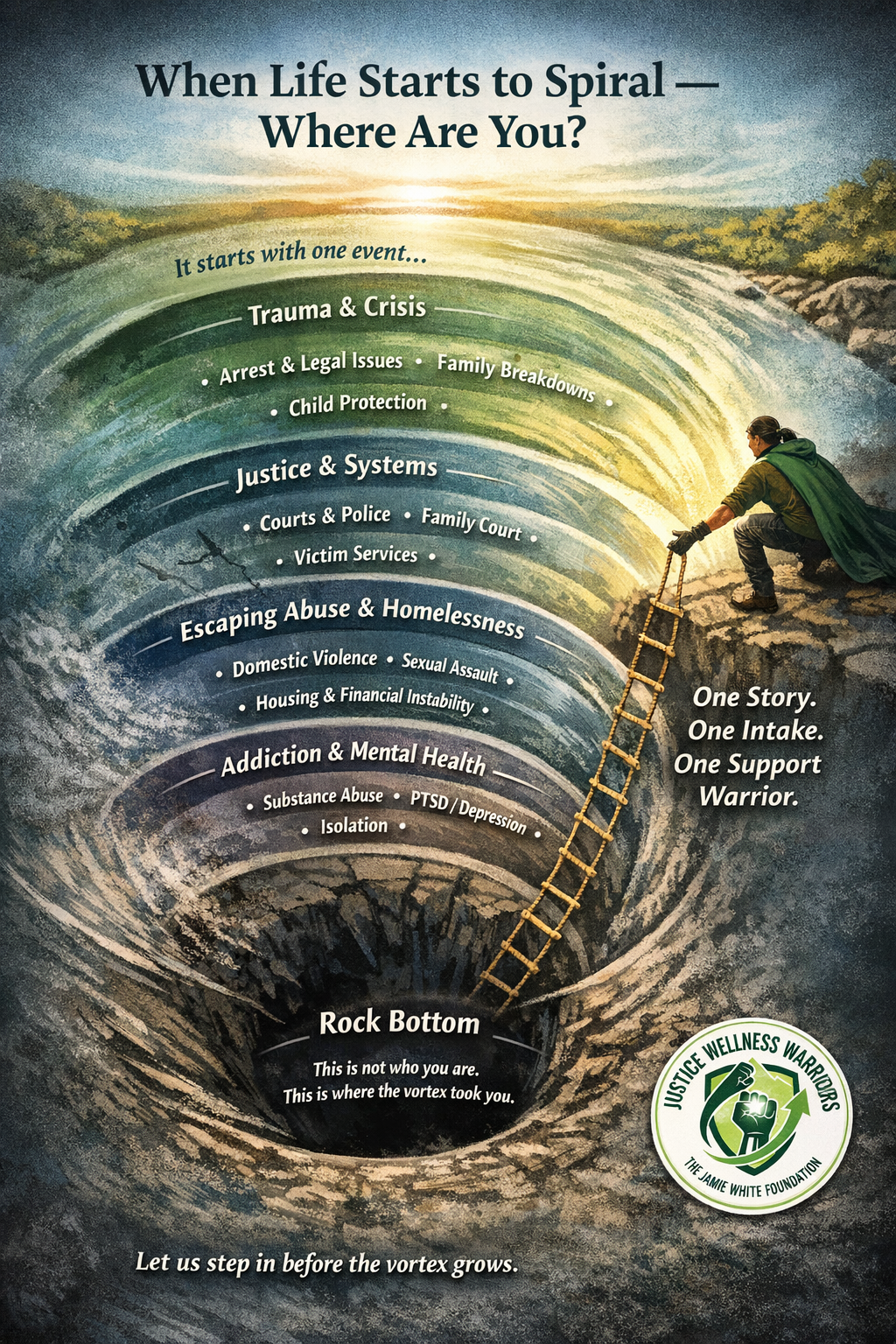 Justice Wellness Warriors exists to support individuals impacted by domestic violence, legal system overwhelm, housing instability, mental health crisis, and behavioural harm cycles.